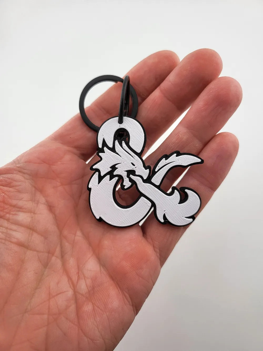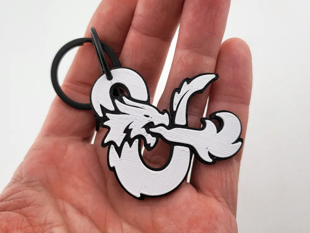 The Dungeons and Dragons Dragon Logo Keychain combines fantasy flair with everyday practicality. Featuring the iconic D&D ampersand dragon emblem, this compact keychain adds a bold, thematic touch to your keys, bags, or accessories. Its durable 3D-printed construction ensures long-lasting use while remaining lightweight and easy to carry.