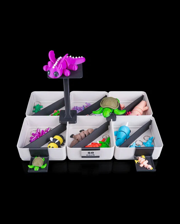 Highlight your product variety with the Fair Showcase Kit, a versatile display solution optimized for high-visibility and creative arrangements. With its unique multi-level design, this kit is specifically built to showcase smaller, detailed items that deserve their own individual spotlight while maintaining a clean, professional booth aesthetic.