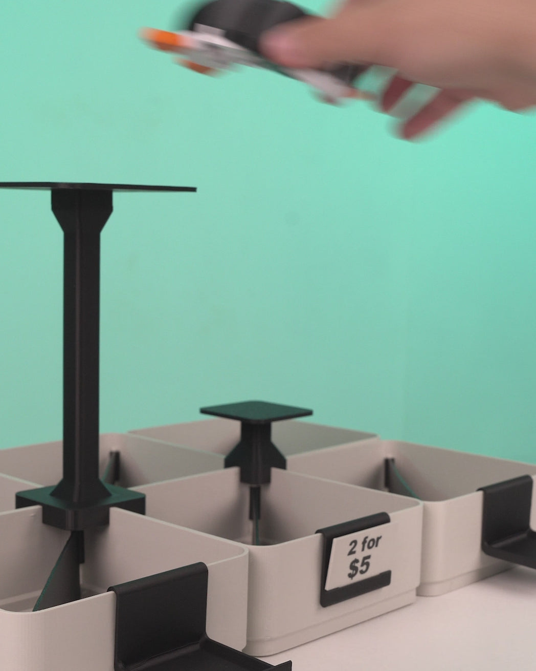 - Integrated small platforms rise above the tray level, providing elevated focal points for your most important or featured products.