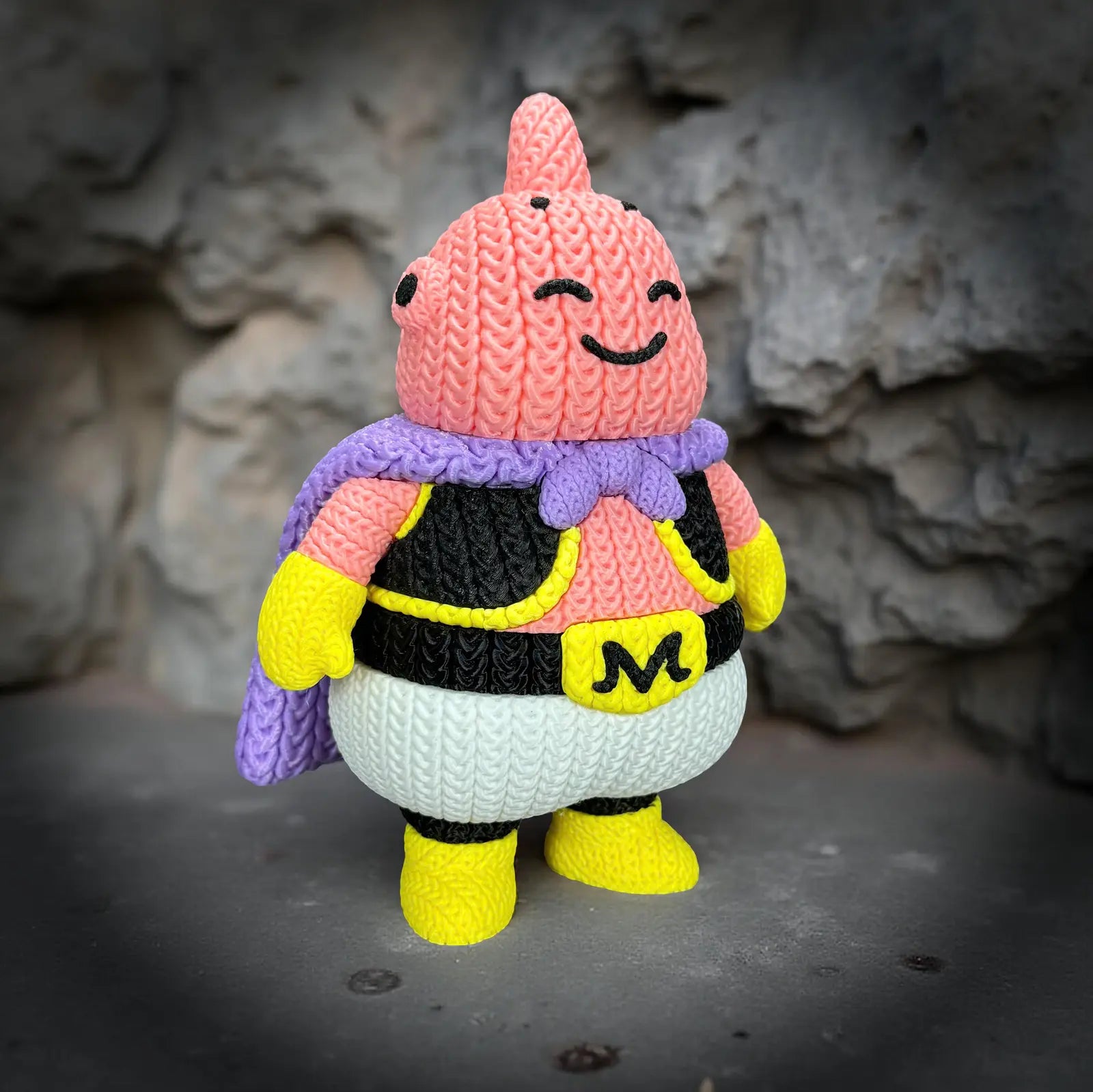 Bring the legendary Majin to your collection with a soft, handcrafted aesthetic. This 3D-printed Fat Buu figure features an intricate surface texture that perfectly replicates the look of a hand-knitted crochet amigurumi plush, capturing the character's cheerful yet powerful presence.