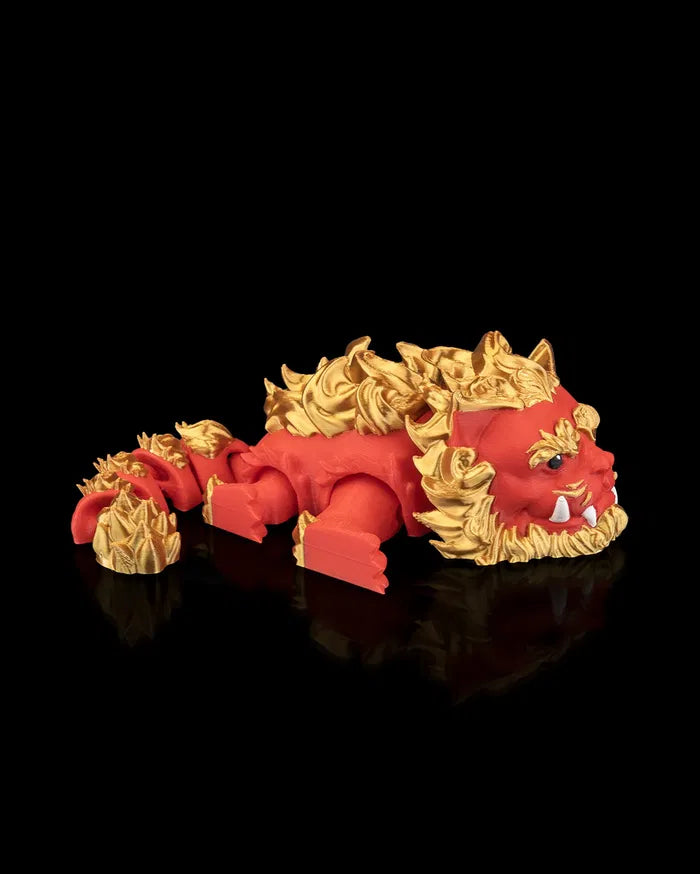 The Foo Lion Figurine embodies strength and guardianship with its fierce stance and richly detailed mythical design. Cloaked in bold red with a flowing golden mane and ornate accents, the Foo Lion Figurine creates a commanding decorative presence that adds cultural character to shelves, altars, or collector displays.