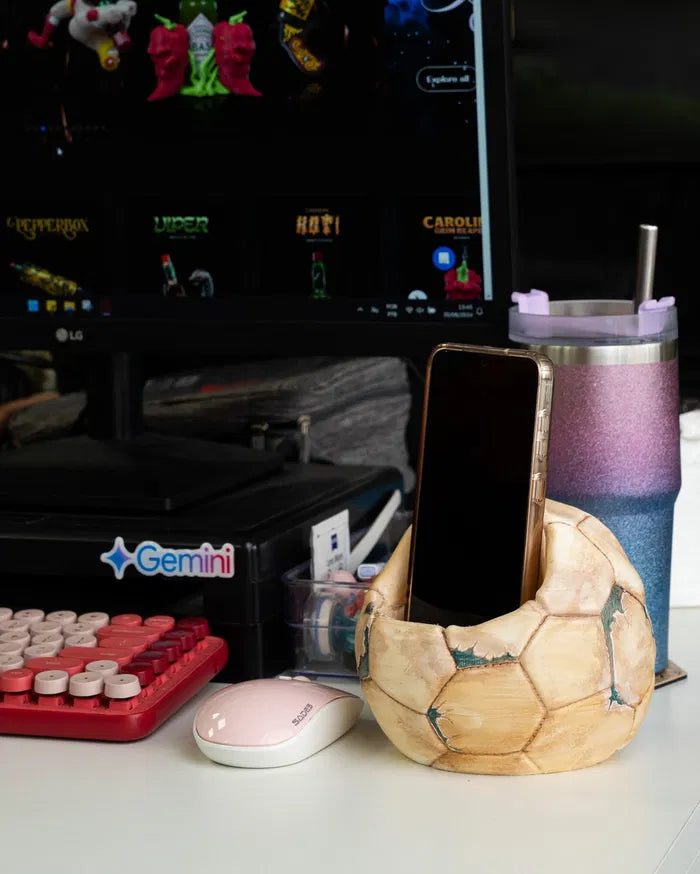 Show your love for the game with the Football Phone Holder, designed to cradle your phone within a weathered, vintage-style football base. Perfect for sports fans and functional décor enthusiasts alike.