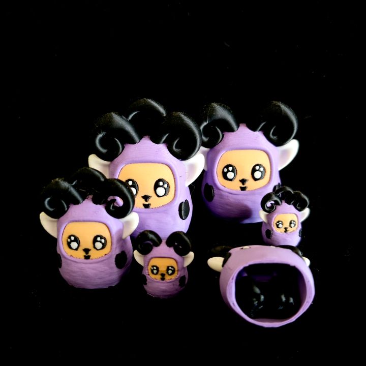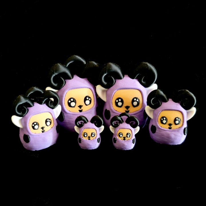 The Goat Spirit is a playful magical creature with a touch of mystery. With curling black horns, bright eyes, and a rounded form, these little beings carry both charm and enchantment, making them a delightful addition to any collection.