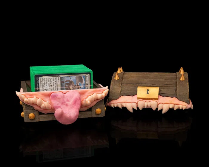 Greedy Chest – Deck Box is a treasure with a bite, designed for gamers who love a touch of fantasy and danger in their gear. Styled like a monstrous mimic chest, complete with sharp teeth and a lolling tongue, it’s both fun and fearsome.