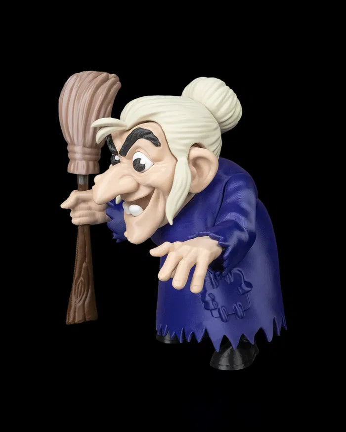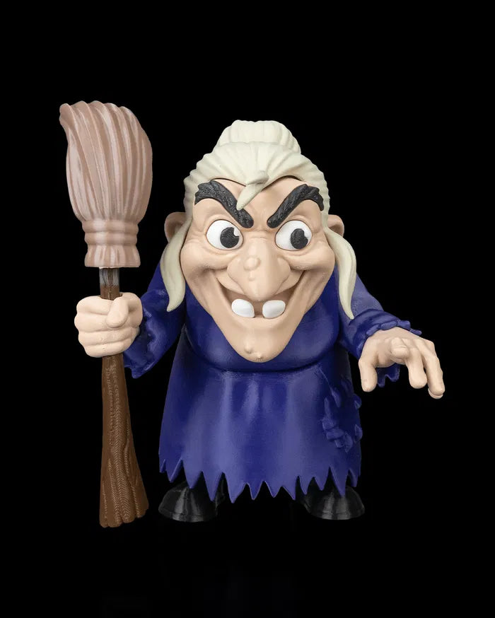 The Hagatha Hex Figure brings classic dark fairy tale mischief to life with a wicked witch character clutching her broom and flashing a crooked, knowing grin. With her exaggerated features, dramatic expression, and flowing robe details, the Hagatha Hex Figure adds a playful yet eerie presence to shelves, desks, or Halloween themed display collections.