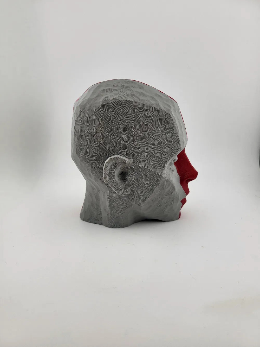 The Head Sculpture No AMS is a striking modern art piece that adds bold visual character to any space. Featuring a split-face design with geometric textures and faceted surfaces, this sculpture creates a dramatic interplay of shape and depth. The Head Sculpture No AMS brings contemporary style to desks, shelves, or creative display areas, making it a standout decorative accent for modern interiors and artistic workspaces.