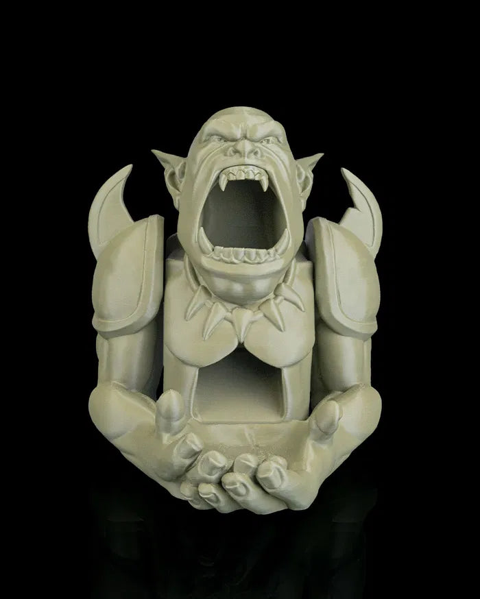 Hungry Orc Dice Tower roars to life with ferocity and fun – an imposing green beast ready to devour your dice with every roll. From his open fanged mouth to his clawed hands below, this tower is both menacing and mesmerizing, bringing an extra thrill to your tabletop adventures.