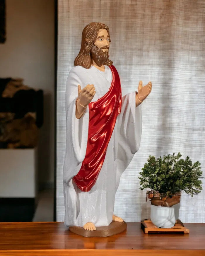 The Jesus Christ Figurine presents a peaceful and inspiring depiction of Christ in a classic devotional pose, dressed in flowing robes with a contrasting sash. With its calm expression and graceful posture, the Jesus Christ Figurine offers a meaningful presence that complements home altars, prayer spaces, or spiritual display areas.