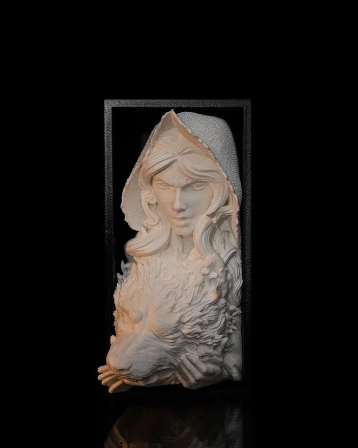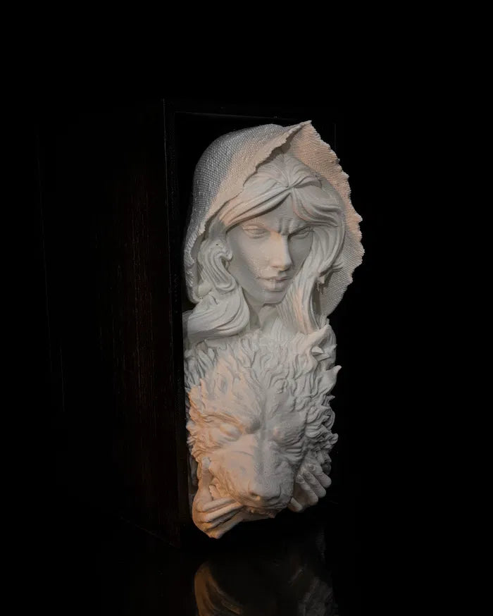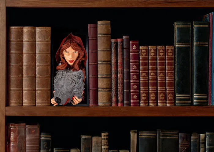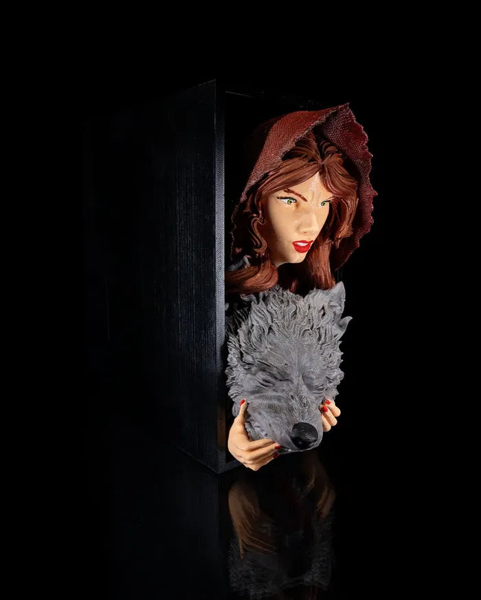 Bring a dark fairy tale twist to your bookshelf with this striking Little Red Riding book nook. Featuring a fierce and confident Red holding the snarling wolf's head, this piece tells a bold story of survival and transformation. Perfect for fantasy lovers and fans of powerful reimaginings.