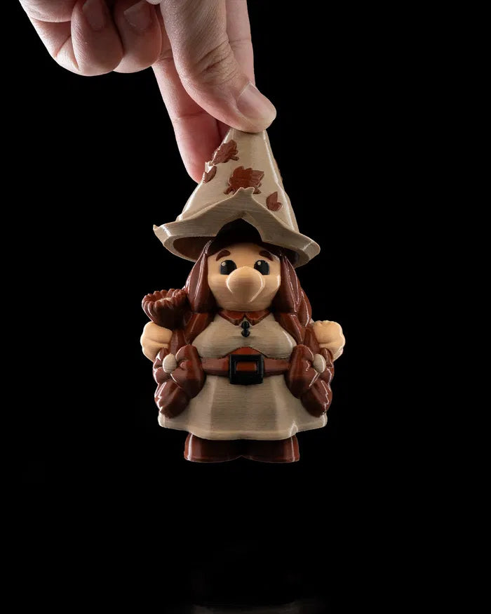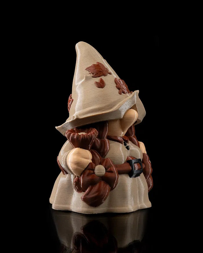 Bring a warm, rustic charm to your décor with Mrs. Hazel Gnome. With braided hair, autumn leaf accents, and a cozy pilgrim-style outfit, she’s a delightful companion to seasonal setups, perfect for shelves, mantels, or centrepieces.