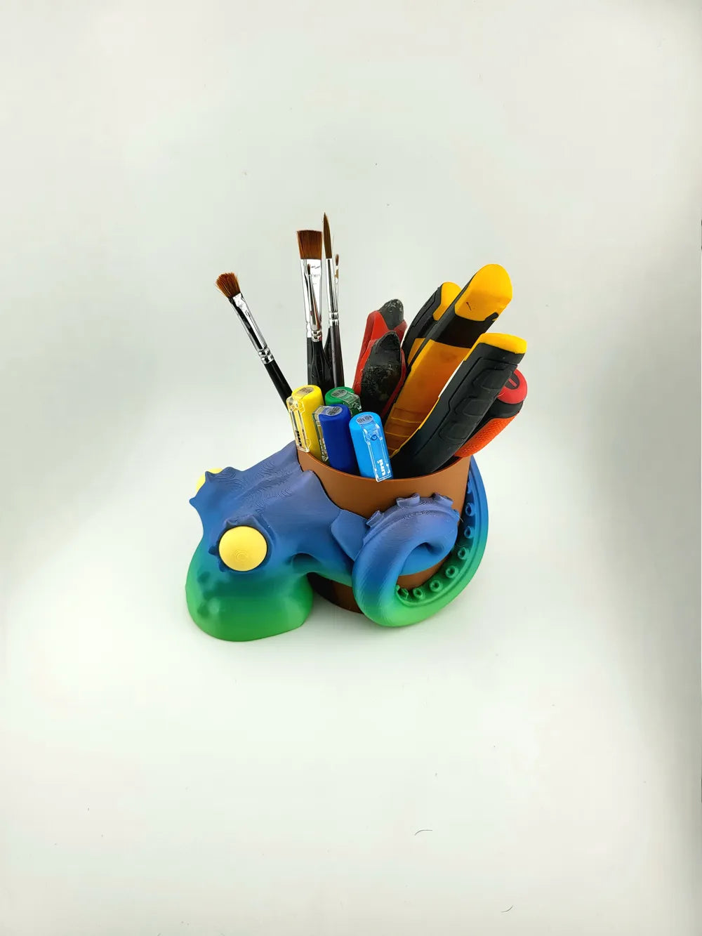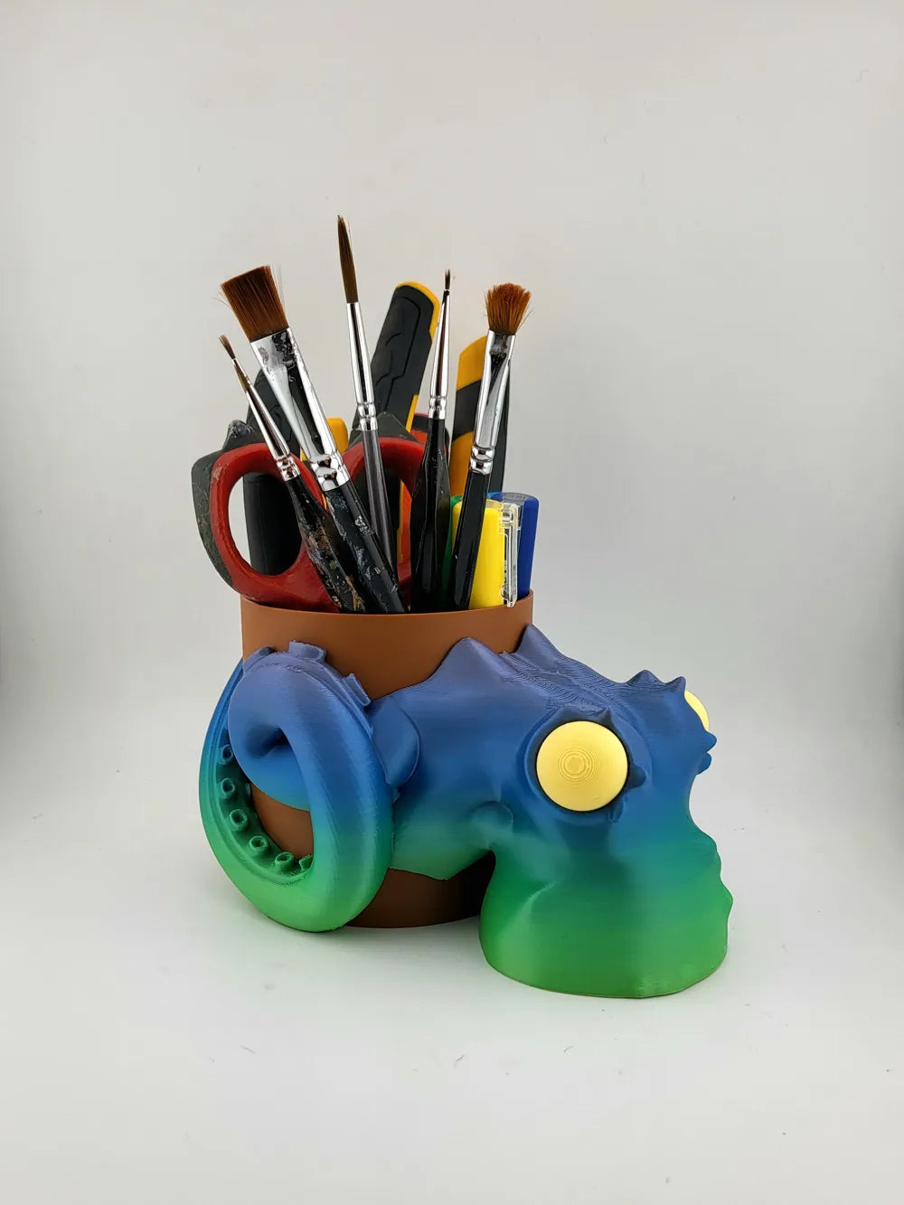 The Kraken Pen Holder Brush and Tool Organizer adds a bold ocean-inspired accent to your workspace while keeping your tools neatly organised. A sculpted kraken curls its tentacles around a barrel-style holder, turning everyday storage into a striking decorative display. The Kraken Pen Holder Brush and Tool Organizer blends imaginative design with practical use, making it a standout accessory for desks, studios, or creative workspaces.