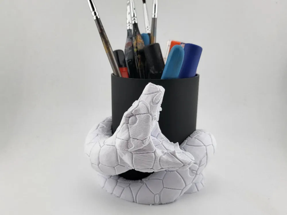 The Pen Tool Holder adds a bold creature-inspired accent to your workspace. Featuring a cracked stone-textured tentacle curling around the base of the container, the Pen Tool Holder combines sculpted scales and dynamic form with practical function. Its striking fantasy aesthetic keeps pens, brushes, and tools neatly organized while enhancing desks, studios, or creative workstations.