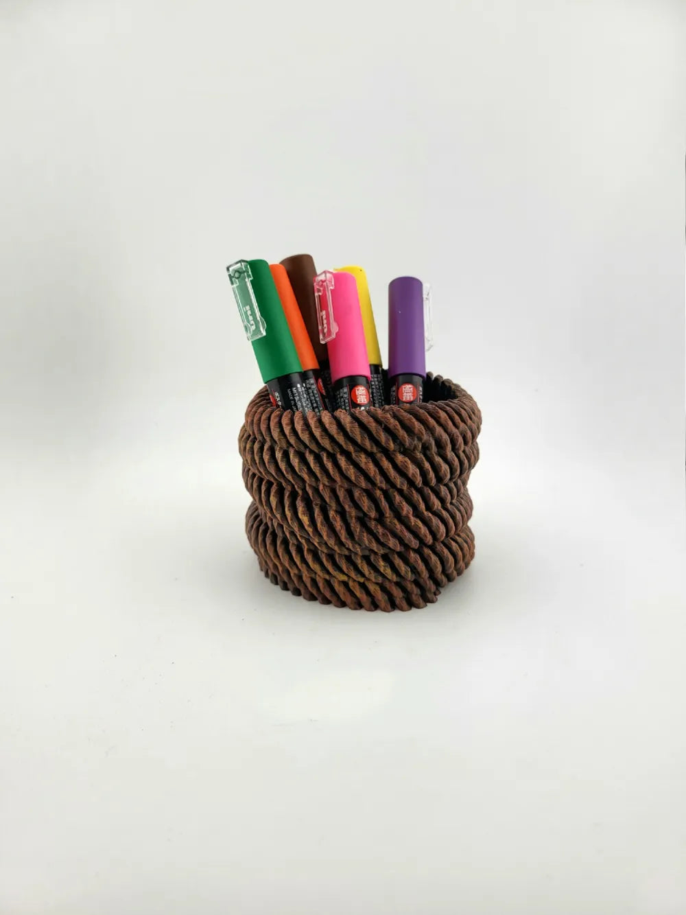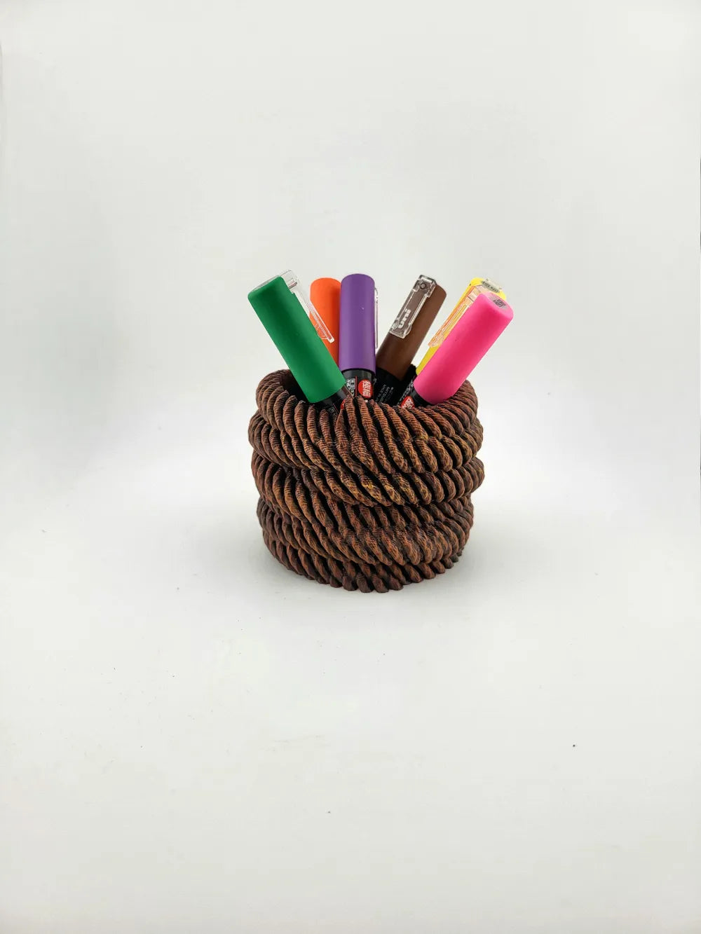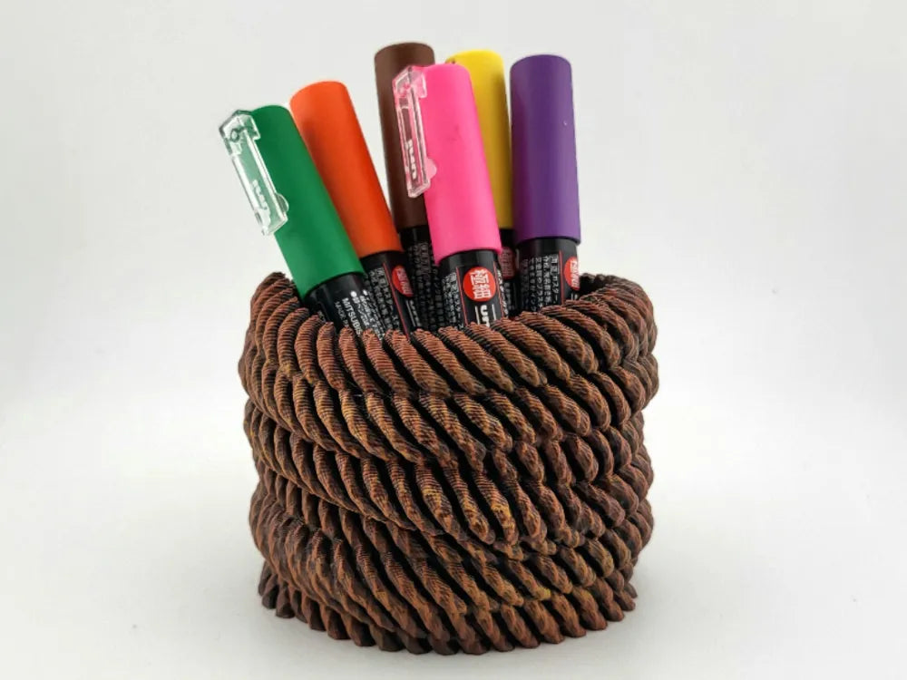 - Rope Spiral Design: A thick coiled rope pattern forms a unique and eye-catching desk organiser.