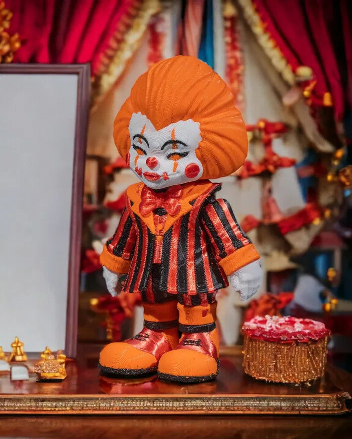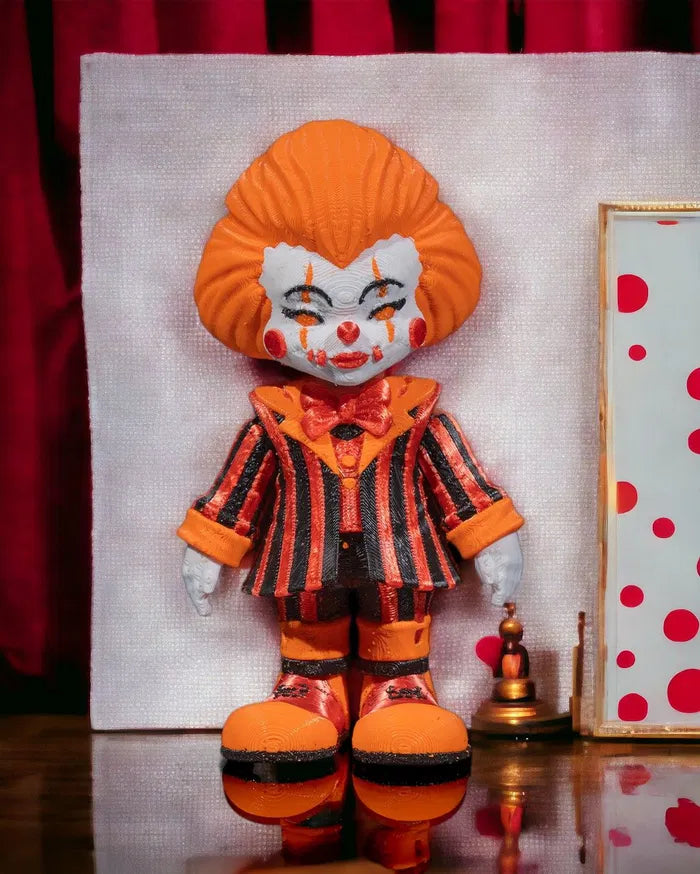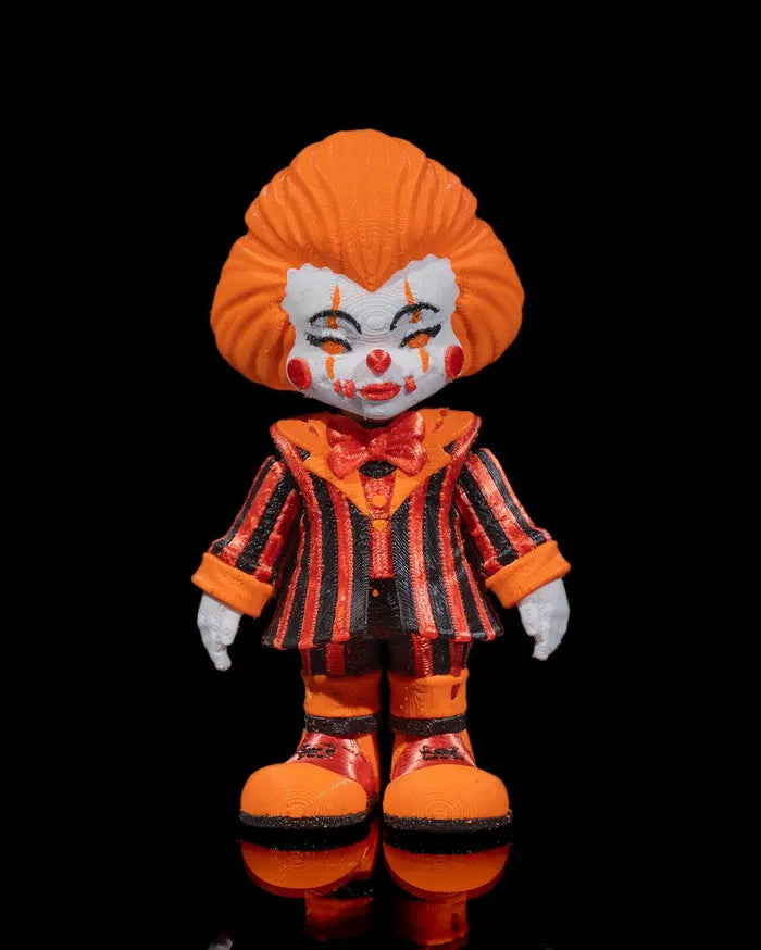 This miniature menace may be small, but don’t let that fool you—Penny, the Wise packs all the unsettling charm of a classic horror clown. With his haunting grin and vibrant striped suit, he’s a mischievous must-have for any eerie collection.