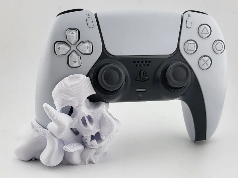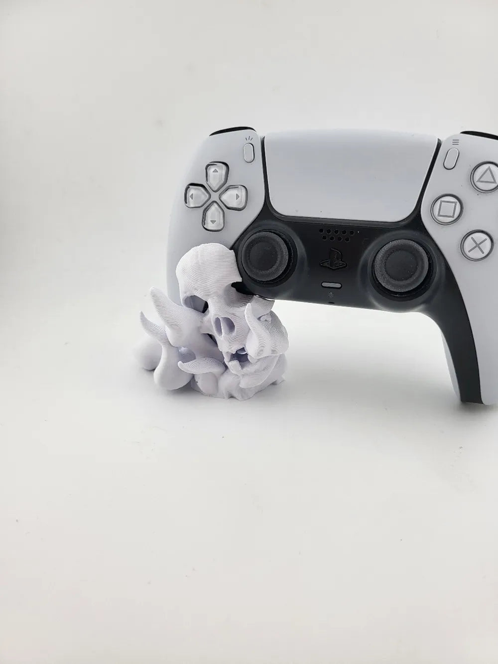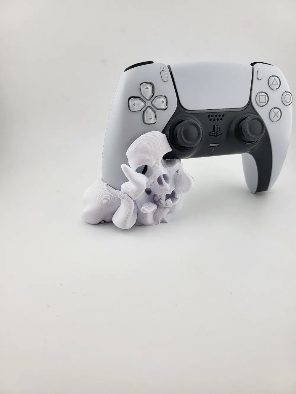 The PS5 Controller Stand adds a bold fantasy-inspired accent to your gaming setup. Featuring a sculpted skull with curling horn-like shapes that support your controller, the PS5 Controller Stand combines dramatic design with practical function. Its expressive contours and compact form make it a striking decorative piece for desks, shelves, or themed gaming displays.