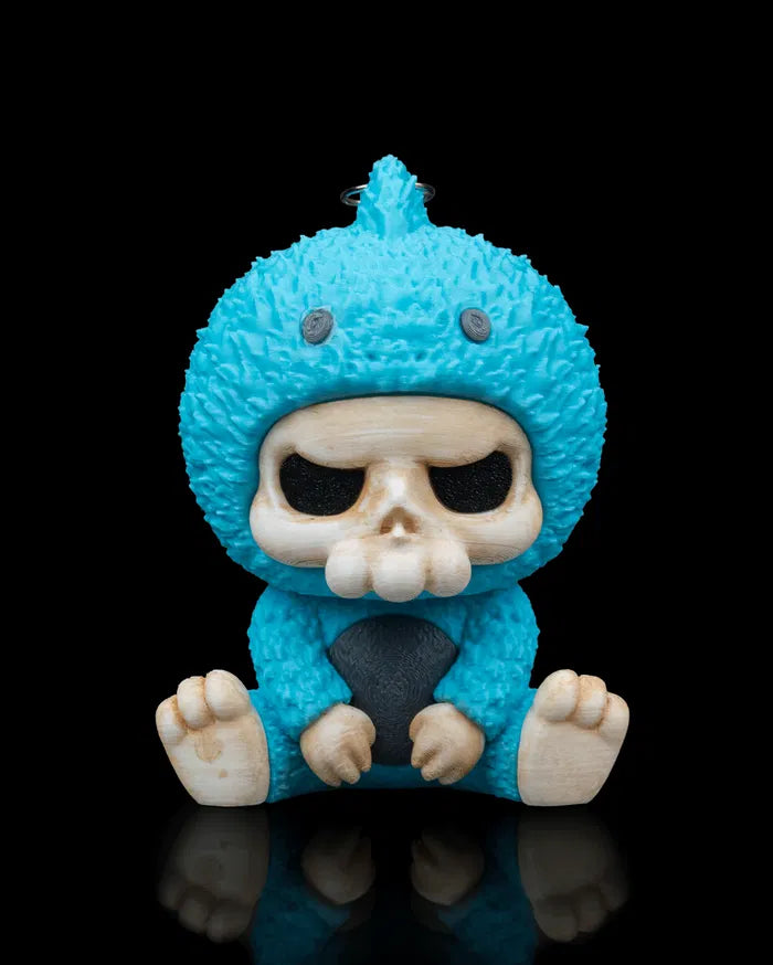 The Skubbies - Chompy Figurine brings a quiet but mischievous presence to your display with its skull faced character wrapped in a textured blue dinosaur suit. Sitting calmly with claws poised and a brooding stare, the Skubbies - Chompy Figurine adds a quirky blend of cute and chaotic energy to desks, shelves, or collectible displays.