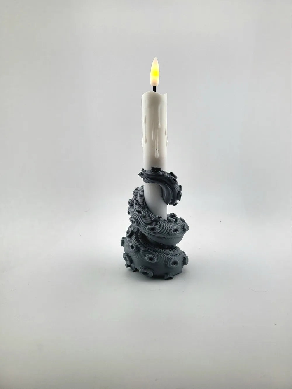 - Tentacle Candle Design: A curling tentacle wraps around the base to support a vertical candle.