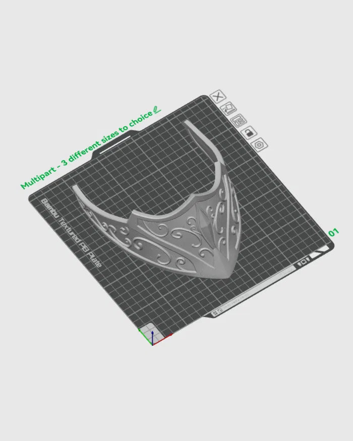 Umbral Ruler Crown embodies quiet authority and controlled power, designed for those who rule from the shadows. Its clean, angular form is paired with an elegant chainmail-style drape, creating a balance between refinement and menace. this crown stands out as a commanding fantasy display piece for dark rulers, mages, and villainous characters.